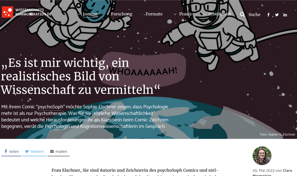 On 5th May 2023 Wissenschaftskommunikation.de published an interview on the psychoSoph comic with me. Thank you, Clara Morweiser, for the interview!